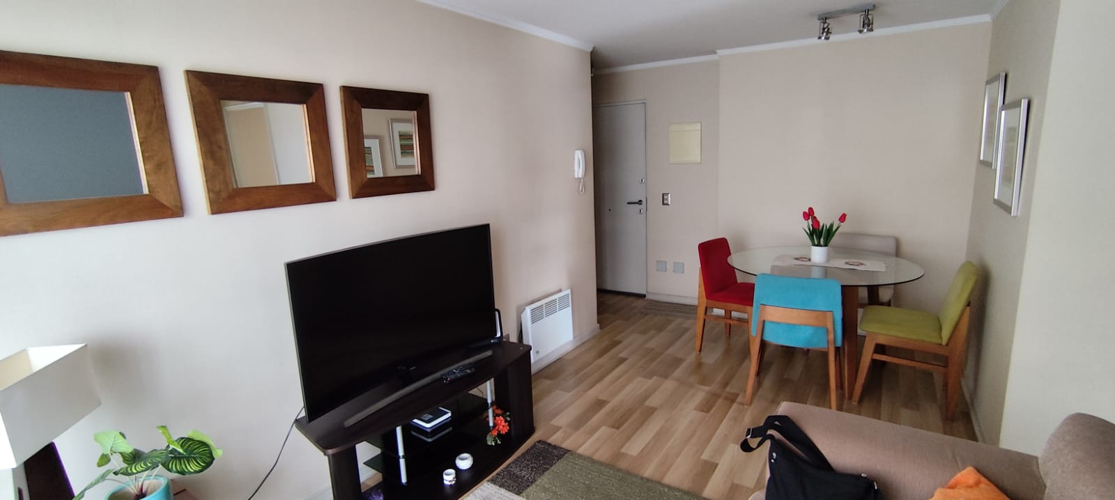 La propiedad de 56 m2 cuenta con living comedor con balcón , cocina cerrada totalmente amoblada y equipada con encimera, horno eléctrico y campana extractora. Además, tiene 2 dormitorios (principal en suite) y 1 baños adicional. El departamento tiene calefacción eléctrica por radiadores a muro, posee 1 estacionamiento y 1 bodega. Se puede vender con o sin muebles, precio con todos los muebles $ 2.000.000 adicionales al precio de la publicación.