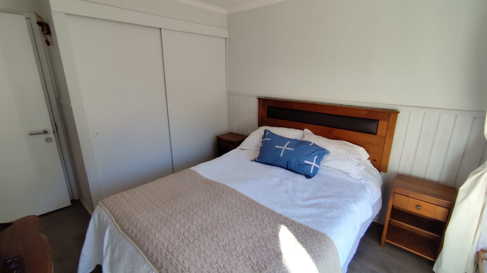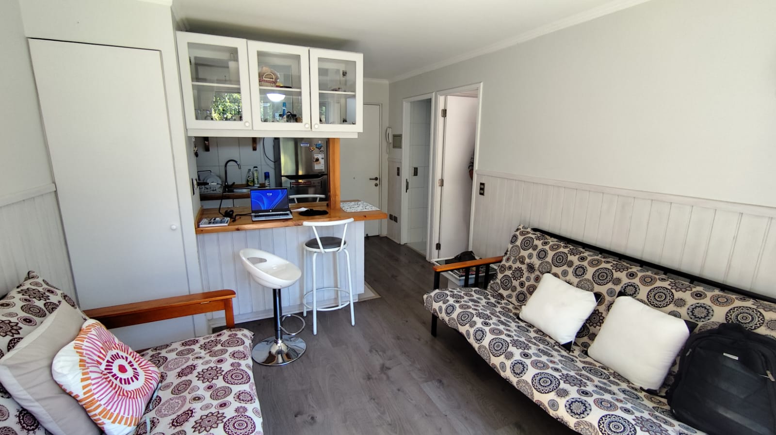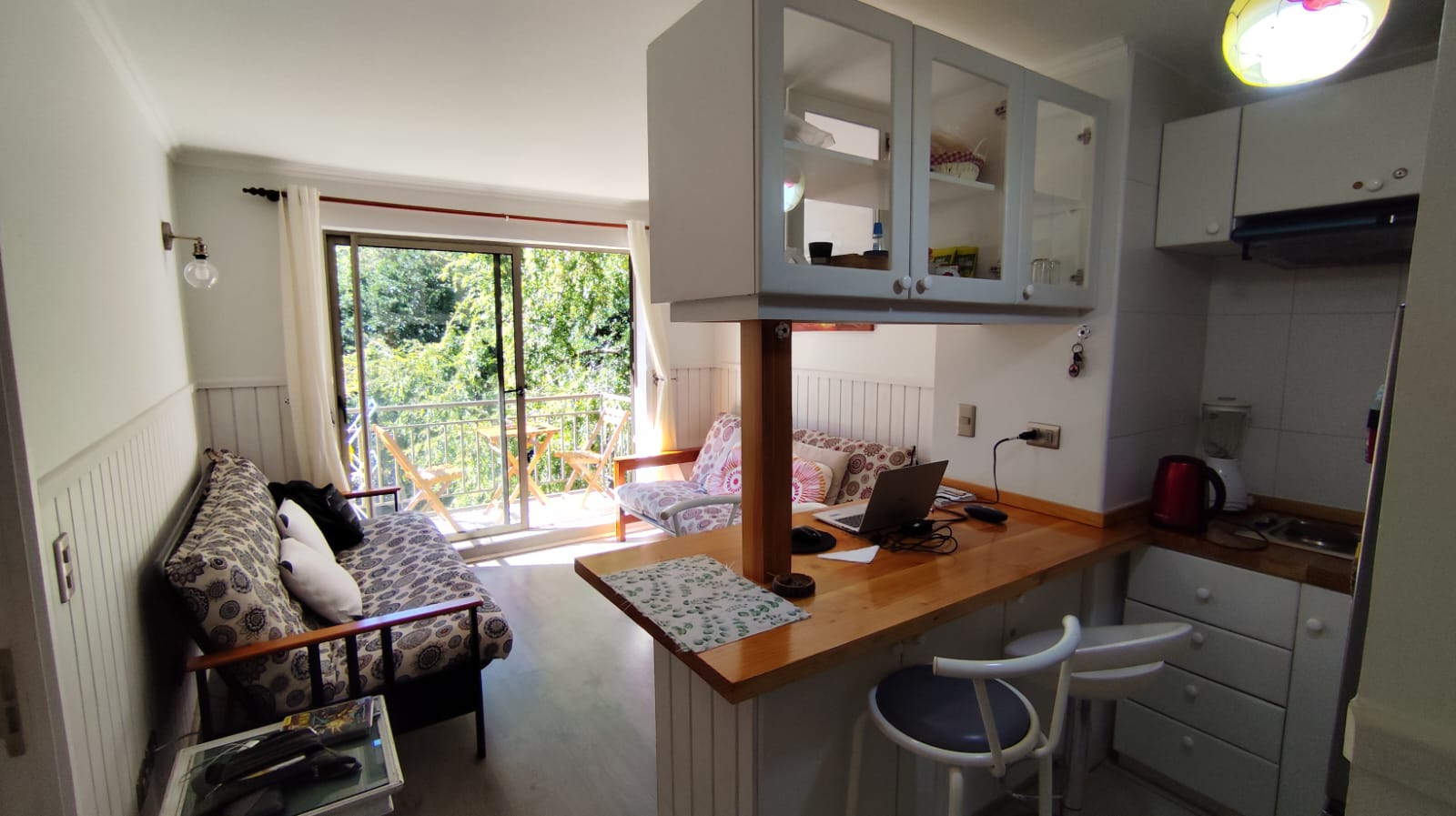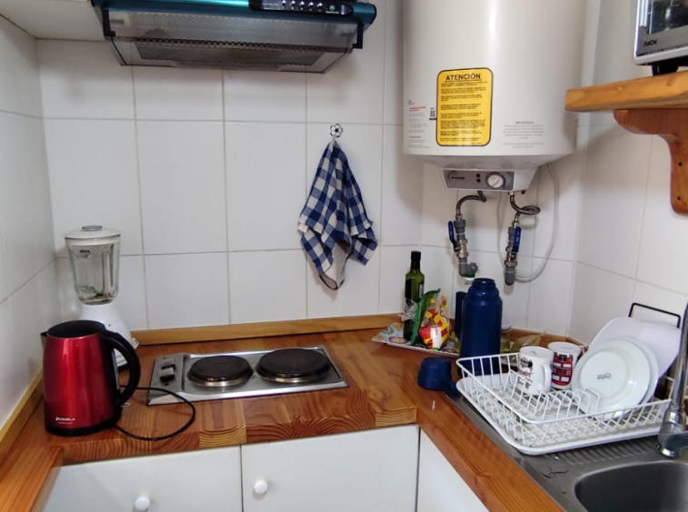 Departamento en ARRIENDO ANUAL en Condominio Nuevo Parque Suizo. El departamento cuenta con 1 dormitorio y 1 baño, cocina americana, agua caliente por termo eléctrico, cuenta con 1 Estacionamiento. Se arrienda full amoblado, sólo se necesita llevar sábanas y toallas. Dormitorios principal en suite, además, tiene acceso al baño por fuera del dormitorio en caso de contar con visitas. Departamento ubicado en piso 4 con vista al interior del condominio. El condominio cuenta con amplias Áreas verdes, bicicleteros, una gran piscina y 2 quinchos. La distancia es perfecta para caminar al centro de Pucón – Condominio con seguridad 24/7. Gastos comunes e internet incluidos.