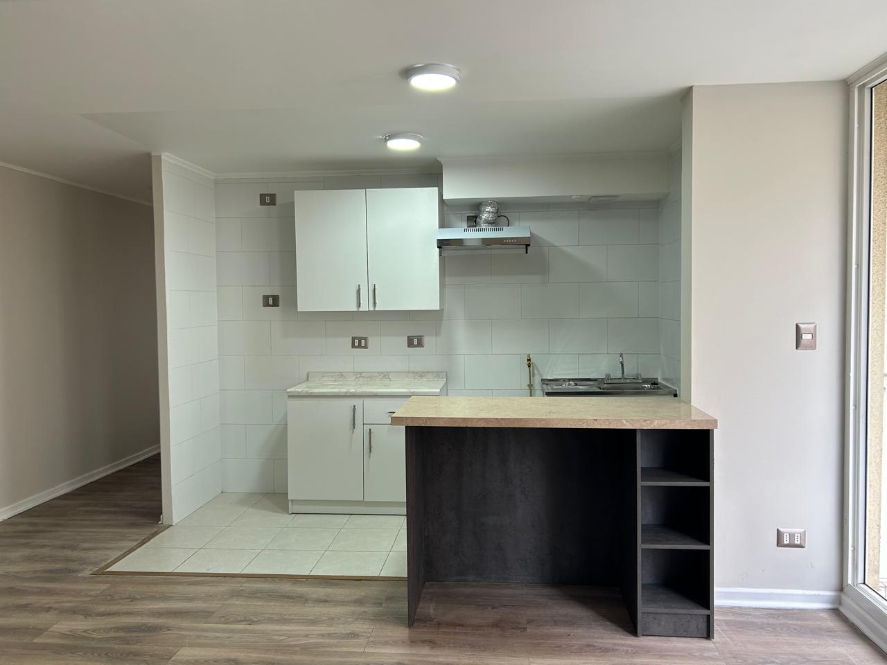 La cocina es americana totalmente remodelado y equipada con una hermosa mesa isla, que entrega un mayor espacio al departamento y posibilidad de uso para compartir.