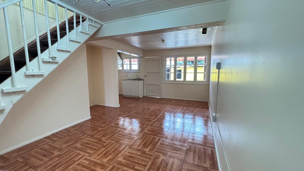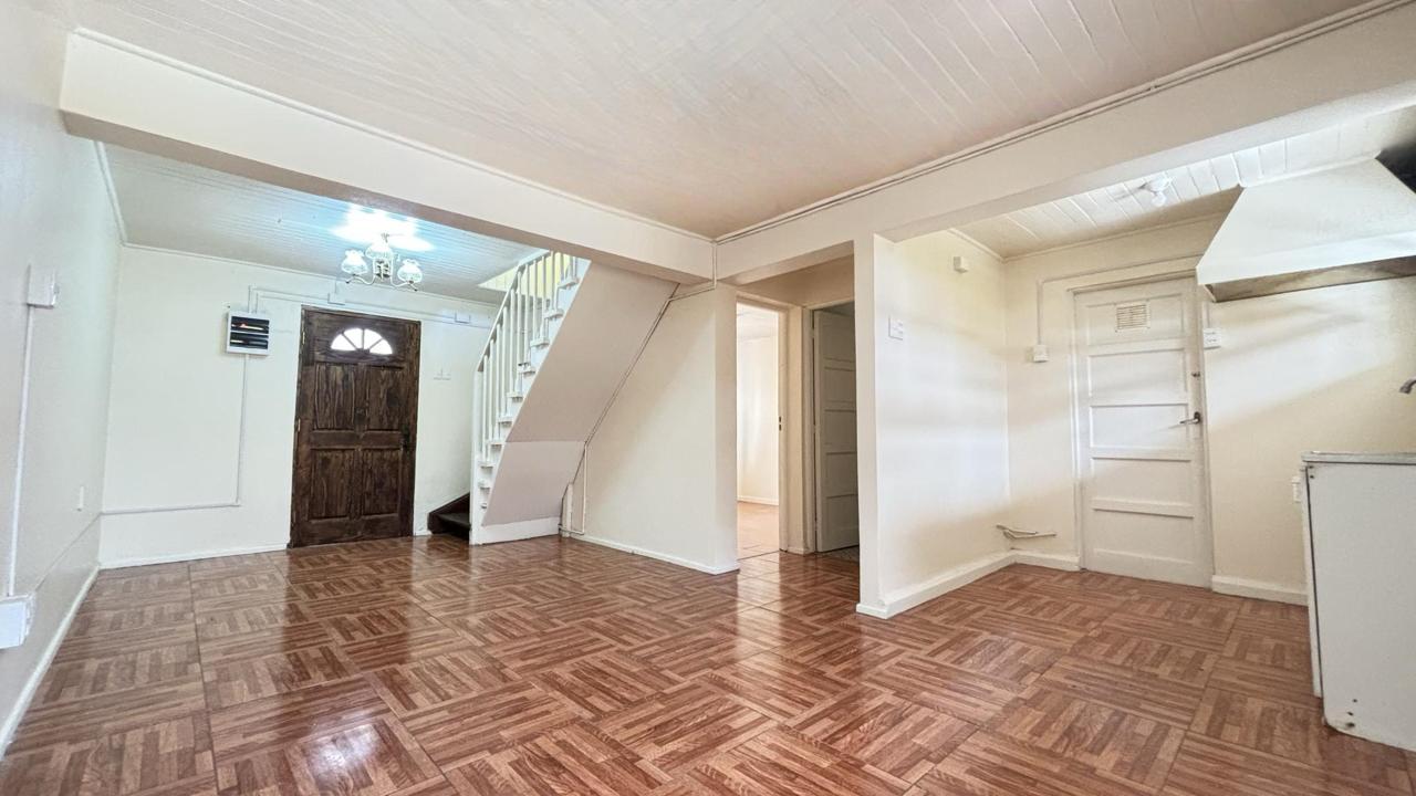 Segundo piso: Escalera de madera, tres dormitorios, principal en suite con baño privado y walk-in closet.