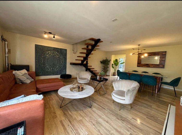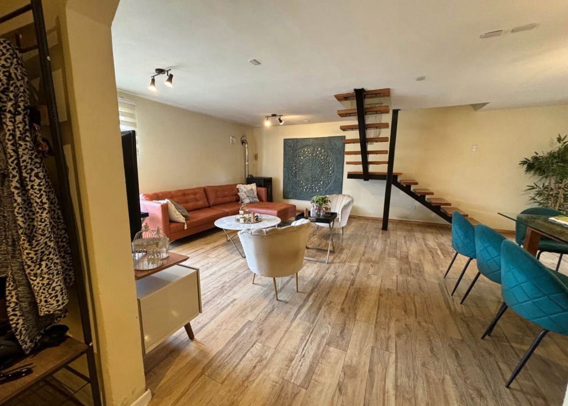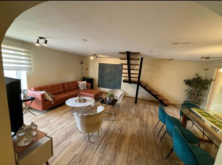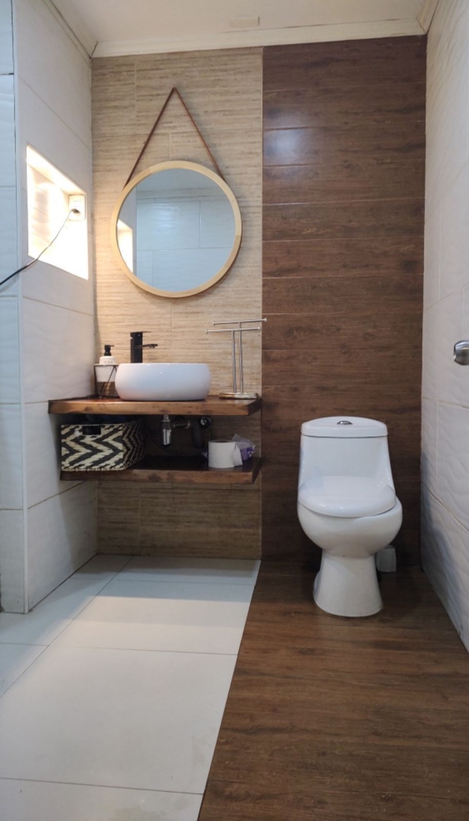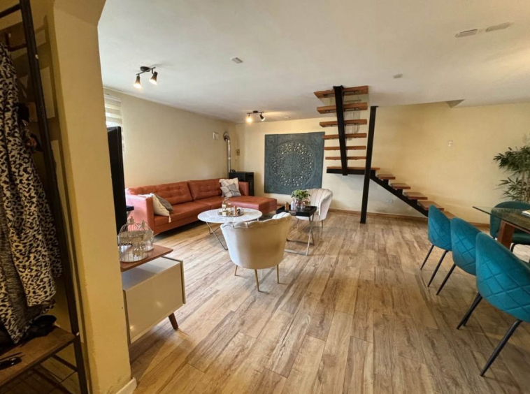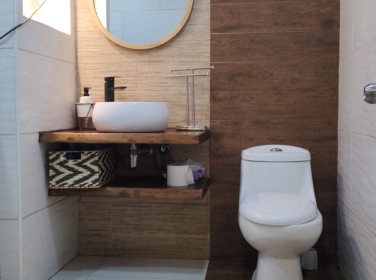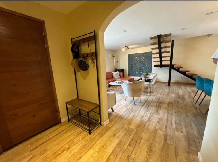 Planta baja espacioso y bello living comedor, Hall de entrada, cocina amoblada, baño y Logia, en el primer piso cuenta con hermoso y claro porcelanato, más escala de fierro forjado y madera de ciprés que le da una calidez única que enamora, cuenta además con estufa a pellet. La cocina incluye todos sus muebles, encimera y campana, el baño del primer piso es amplio con piso de porcelanato y un lavamanos aéreo con una base de madera de secoya.
