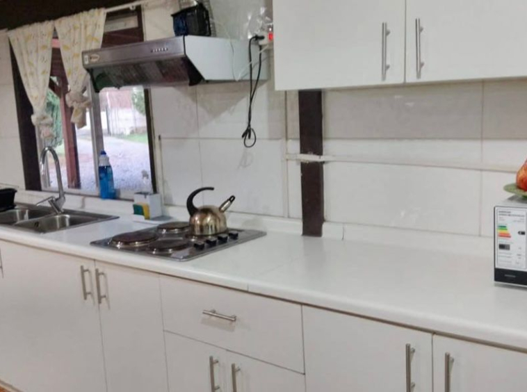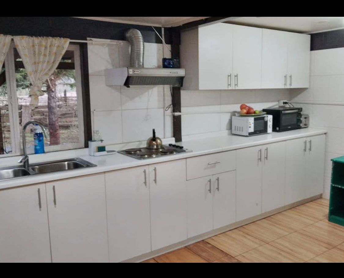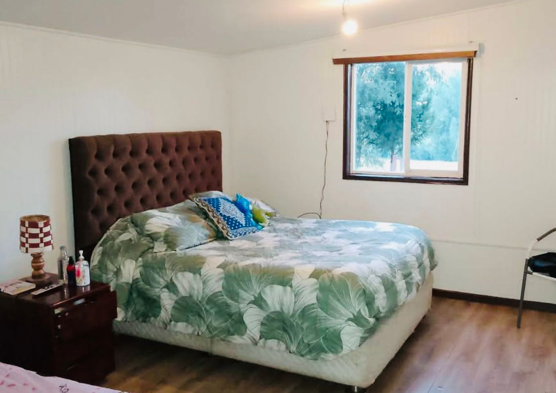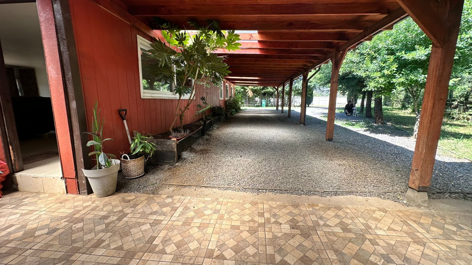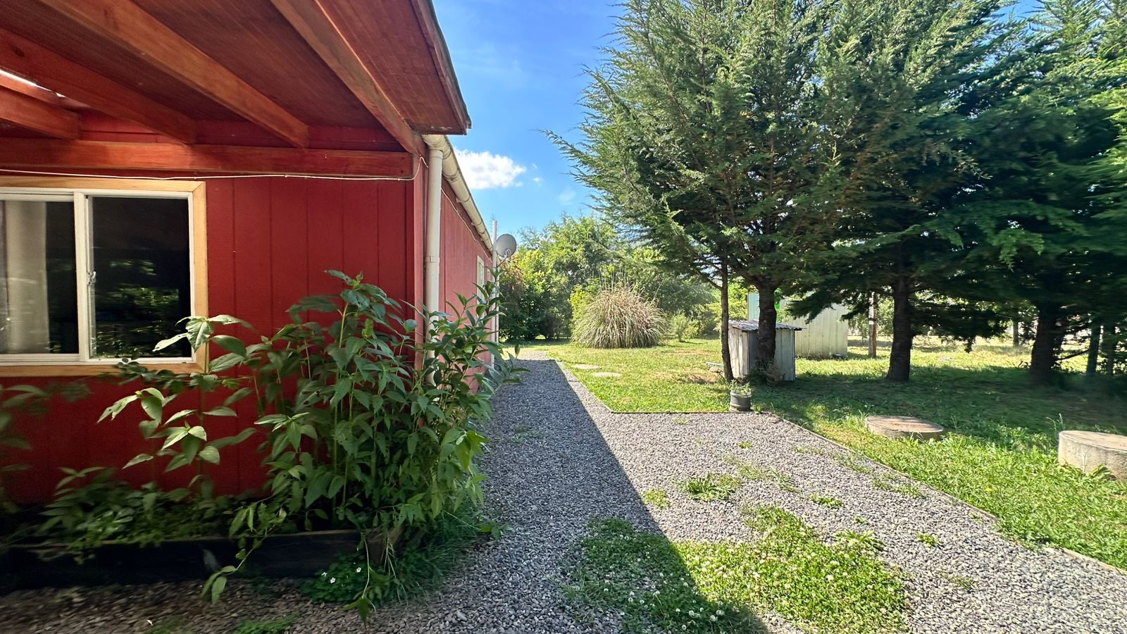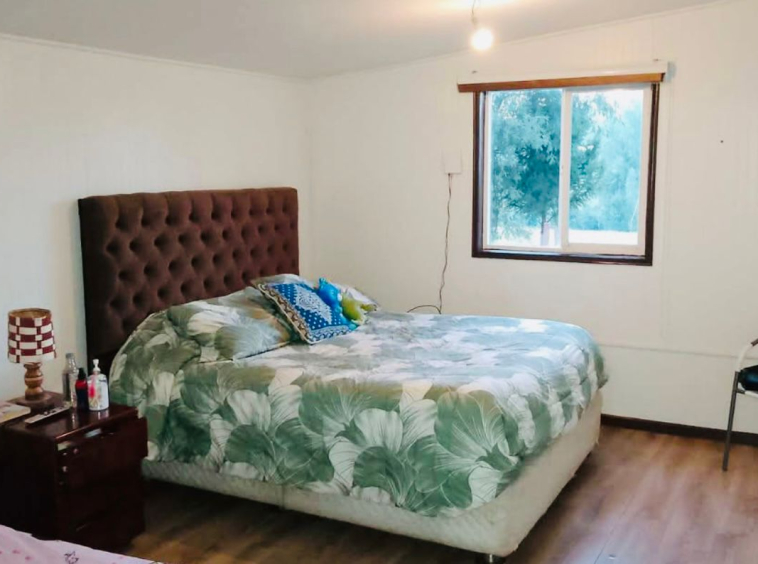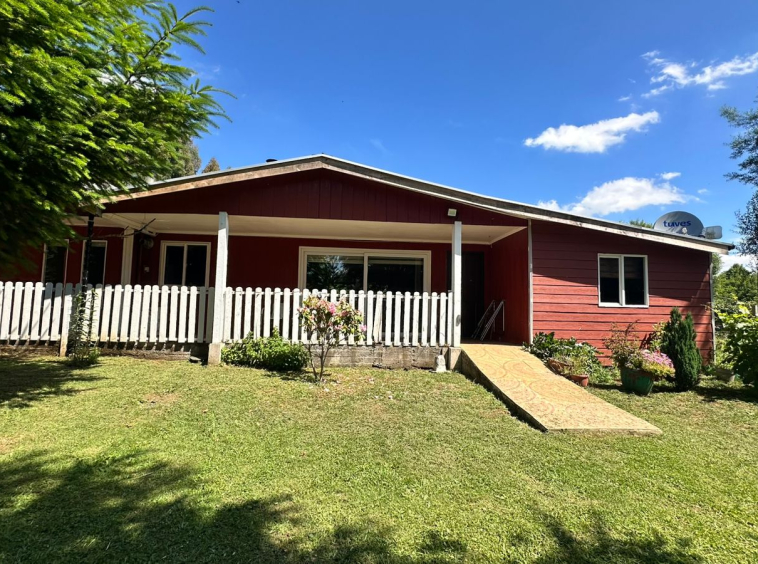 Casa con base radier, estructura de madera, ventanas termo panel, espacios amplios y luminosos construcción de 220 m², la casa cuenta con 5 dormitorios (piso flotante), 2 baños, Living-comedor, cocina amplia (solo muebles de cocina incluidos), Logia, Piso cerámico en áreas comunes, Leñera, Portón eléctrico, Internet, Cámara de seguridad, agua por APR y pozo.