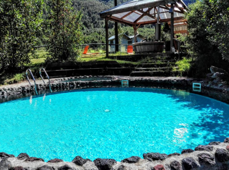 La propiedad cuenta además con paneles solares integrados con red para todas las cabañas, piscina, electrificación, agua propia de vertiente y alcantarillado en base a fosa y pozo absorbente.