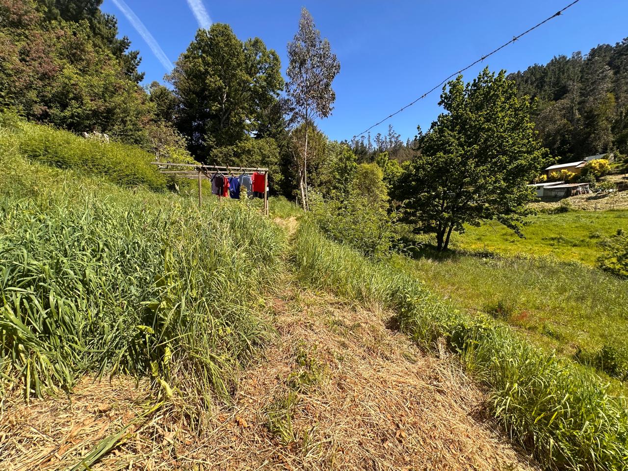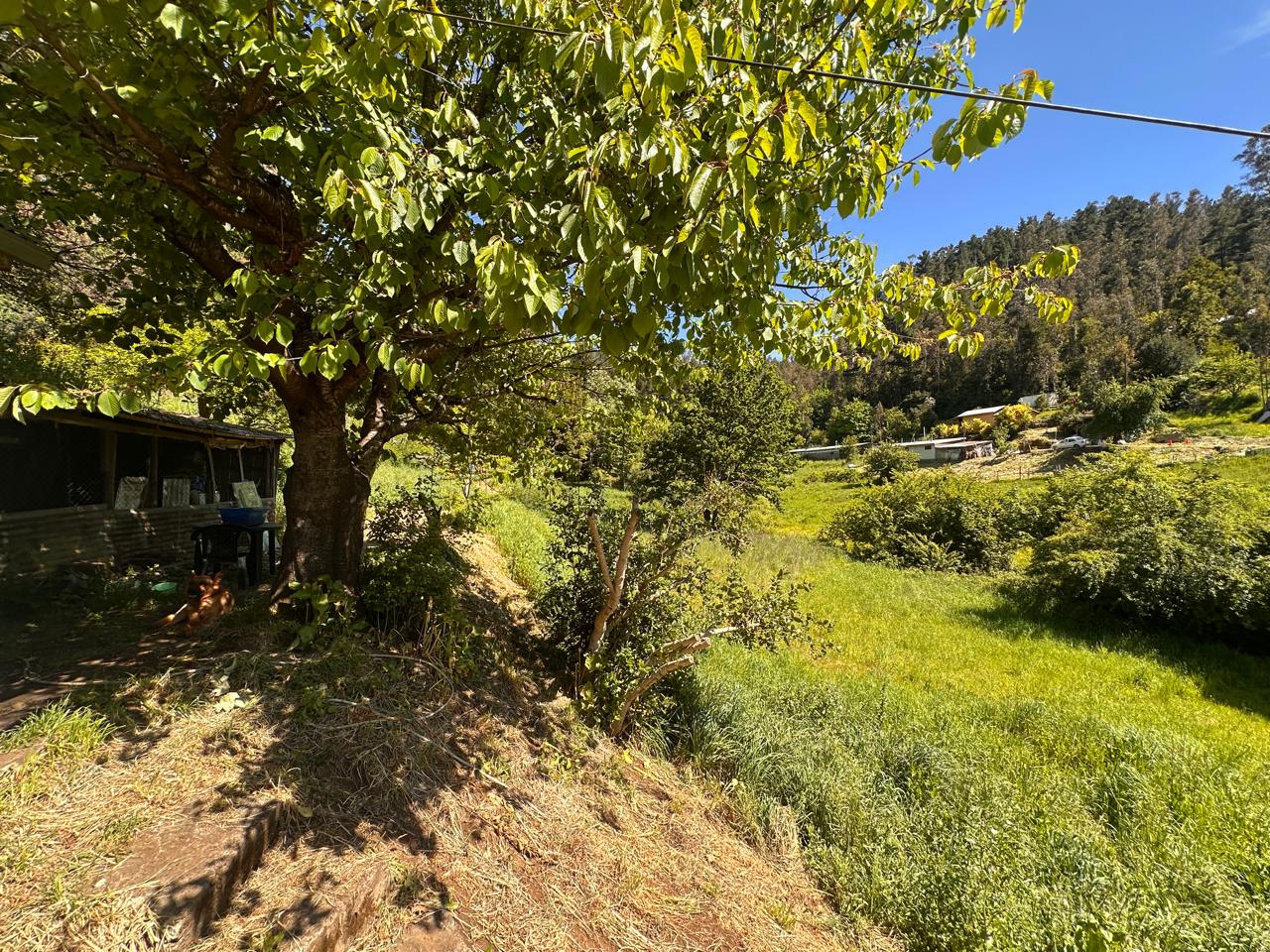 El terreno tiene árboles frutales y árboles como el boldo, peumo, laurel, mañio, ciprés, pino y castaños.