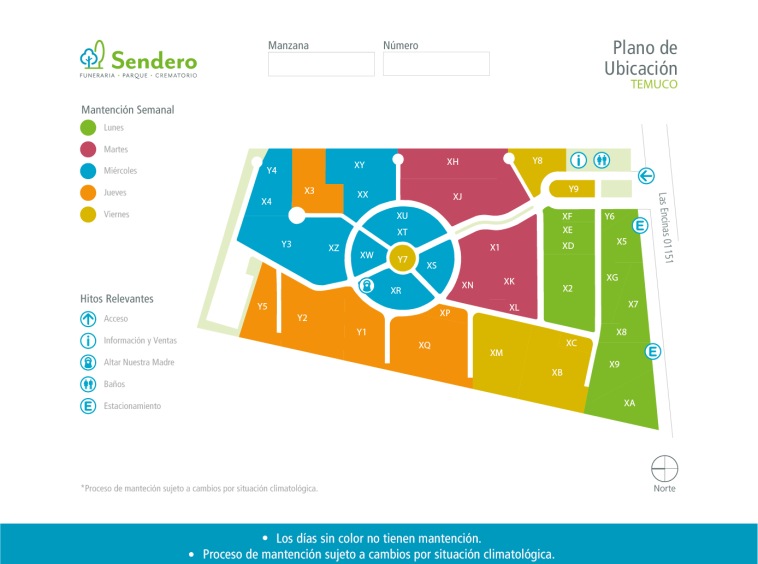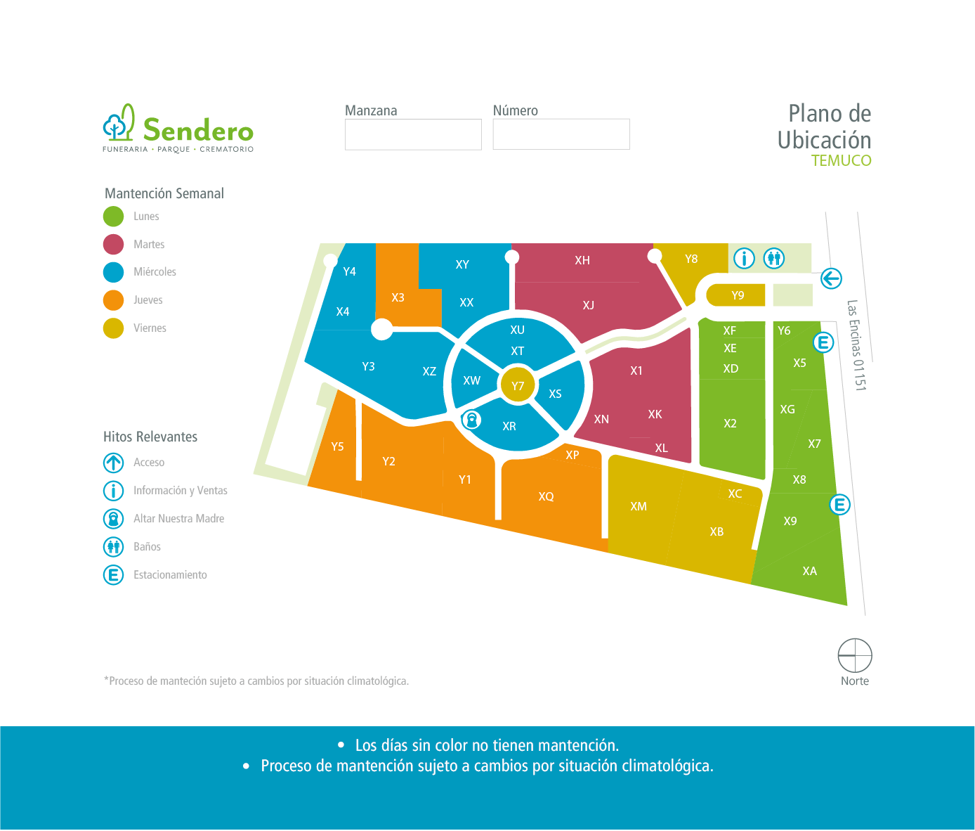 Se vende sepultura en Parque del Sendero Temuco, con capacidad para 7 personas y con mantención perpetua sin costo. La sepultura es la número 1022 y se encuentra en Sector 1 de la Manzana X2 del plano.